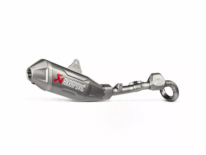 AKRAPOVIC EVOLUTION LINE FULL EXHAUST SYSTEMS OFFROAD, The flagship of the Akrapovic exhaust system range, Used and tested by top factory teams in motorcycle racing, Each model is unique and dedicated to maximizing the engineメs performance, while reducing overall weight for optimized overall handling of the motorcycle, Made entirely of titanium, Exhaust systems meet FIM noise limits, feature a more durable welded bracket and titanium end cap, Performance exhaust systems also feature a new coating for the silencer outer sleeve giving better scratch resistance and easier cleaning