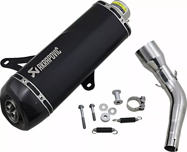 The Slip-On represents the first step in exhaust system tuning, Simple to install and replaces the stock muffler, Provides more power, more torque, and less weight, Gives your scooter that unmistakable deep resonant Akrapovic sound and also dramatically changes its visual appearance, Features Akrapovicメs finest carbon fiber end caps