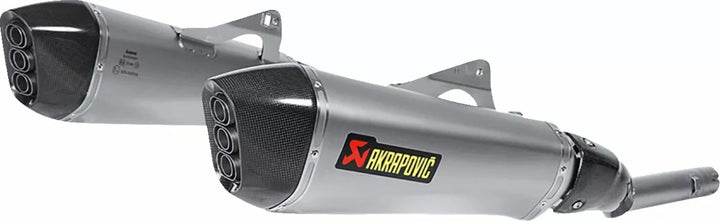 Ride in style with the Akrapovic Slip-On Line muffler for this top-of-the-line BMW touring motorcycle, You will recognize this system by its unique design, which is outstandingly executed using top-quality materials such as titanium and carbon fiber for the outlet caps, In order to make long trips enjoyable sound experiences as well, Akrapovic engineers have introduced further sound enhancements to this fine six-cylinder engine with this Slip-On system, Is compatible with BMW side cases
