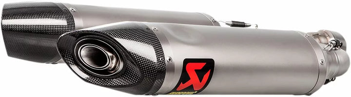 Sporty and lightweight Slip-On Line exhaust systems are a perfect match for this great Aprilia, Slip-Ons represent the first step in the exhaust system tuning process, and they offer a great balance between price and performance, The visual change comes with stylishly shaped mufflers and carbon fiber end caps, In addition to design effects and improved power delivery, Slip-Ons also enhance the Aprilia sound, Let your bike stand out with more power, beautiful design, and the unique Akrapovic sound of Slip-Ons