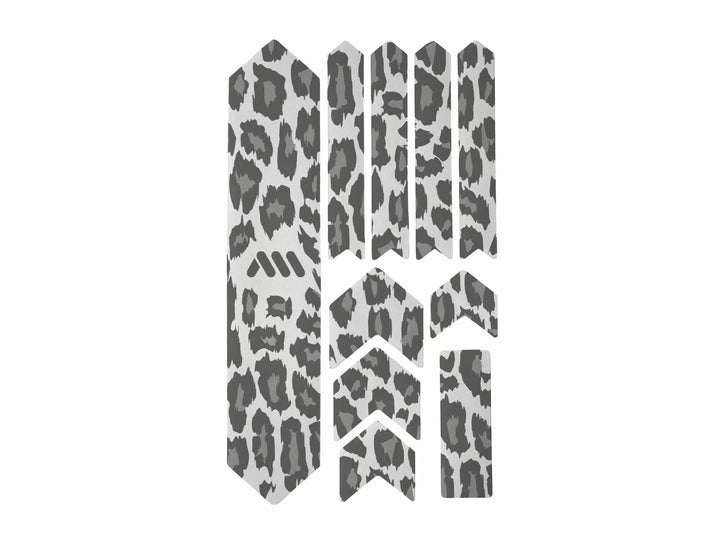 The AMS Honeycomb Frame Guard protects bike frames from impacts, scratches and cable rubbing., It's made of an exclusive, super easy to install, honeycomb adhesive PVC with such a quality that will last longer than your bike., Designed for universal fitting., High impact and rub resistance honeycomb 380 microns semi-rigid PVC., Automotive-grade materials. Won't yellow over time., Minimum weight (28 grams / 0.98 ounces)., Scope of Delivery: 10 parts for a universal protection system: 1 big part for the down tube; 4 arrow parts for extending the down tube protection or top tube, 4 parts for the chainstay; 1 rectangle for cable wear protection or other uses., This product is designed and produced in Barcelona by riders, for riders!