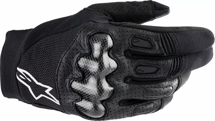 Durable off-road glove that features a hard-knuckle protector, is perfect for motocross or enduro riding, Gloves packed with reinforcements and constructed with premium materials offers excellent comfort and performance features, Alpinestars polyurethane (PU) knuckle protection for superior impact and abrasion resistance, Perforated leather top hand improve breathability and protection, Gloves constructed in a pre-curved shape, TPR on fingers for abrasion resistance, Reinforced thumb and palm area increase durability, Silicone grips on fingers for improved grip and lever control