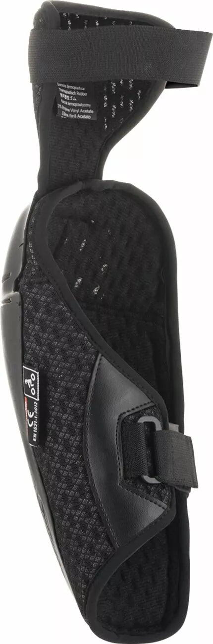 Padded construction and profiles on the upper part have better flexibility and reduce material wrinkles, Dual strap system with hook-and-loop closures for rapid and easy mounting, Highly ergonomic design improves streamlining while providing crucial protection for MX and off-road riding, Specially designed to offer more comfort and adjustment with top strap mounted above the elbow and lower strap positioned for an ergonomic fit, Asymmetrical and lightweight ergonomic panel construction offers extended protection surfaces and reduce rotation, Vented panels and 3D mesh material provide comfort to the rider while preventing heat buildup, yet maintains tactile contact with skin, Designed with a flexion channel through the shell that allows the shell to bend with the elbow, Protection system utilizes robust protective structures and impact absorption padding, Elbow protector EN 1621-1:2012 Level 1.