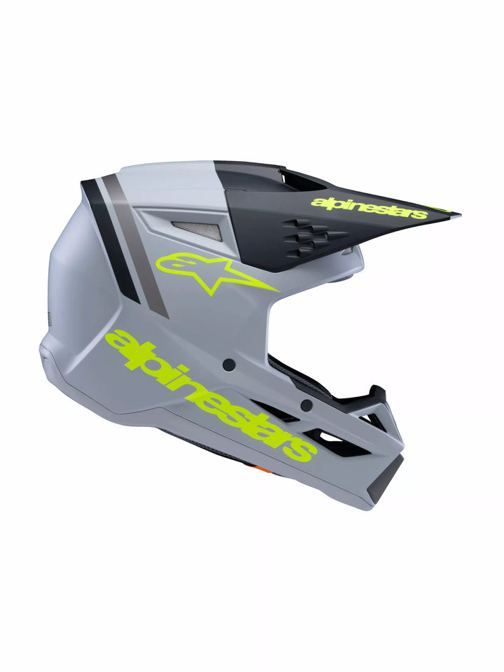 Anatomically engineered and profiled specifically for youth and younger riders, the all-new SM3 Youth Helmet is optimized for MX, Enduro and Off-road use., This lightweight helmet features a thermo-injected shell incorporating a special polymer blend enhanced by varying degrees of thickness that is engineered to deliver the optimal combination of impact protection and light weight., Lightweight outer shell is constructed from a technologically advanced impact resistant thermoplastic in three sizes (Youth Small, Youth Medium and Youth Large. The SM3 Youth weighs 1060g., The fit can be tailored to the rider’s head thanks to the helmet’s crown and cheek pads, which are available as genuine spare parts in different thicknesses., Youth Medium and Youth Large sizes share the same EPS size, which allows riders with an YM size to initially buy an YM helmet and then configure it to a Youth Large size as they grow via the crown and cheek pad spare parts., The Youth Small has a smaller EPS size and can be customized only via the cheek pads. Alpinestars extensive research has shown that the kids that wear a YS size are very small, typically 3 to 4 years old, and therefore they require a dedicated helmet fit., Multiple density inner liner ensures the helmet is equipped with the correct density in the correct area for enhanced impact absorption, while also helping reduce overall weight., The inner and outer surfaces are engineered to minimize the effects of oblique impacts., Alpinestars patented low friction coating is applied to the inner part of the main EPS liner to reduce the rotational acceleration forces that can result from certain oblique impacts. This layer essentially acts as a slip plane to mimic the brain’s own low friction cerebrospinal fluid, which is the body’s natural defense against oblique impacts., Patented visor release system ensures the visor is released with the correct pre-determined amount of force, effectively reducing the forces on the rider’s neck during an impact., Comfort liner is constructed using recycled materials for a lower carbon footprint., Hydration tube channels are integrated into the helmet’s cheek pads for convenience and performance., Safety, Alpinestars has introduced a new in-house standard for the SM3 Youth to test the helmet’s chin to conditions heavier than the homologation standard, and in order to pass the Alpinestars’ new standards, the shell thickness and the structure of the helmet design itself have both been optimized on the chin area for superior impact performance., Equipped with an Emergency Release System and removable cheek pads to permit the safe and easy removal of the cheek pads while the helmet is still on, while the 3D contoured foam ensures rider comfort., Soft textile chin strap is 25mm for optimal safety and rider comfort., Stainless steel D-rings ensure a tight and secure fit., Ventilation, Maximized ventilation and high levels of heat transfer exchange thanks to 10 inlets and seven exhaust ports., The visor has been designed to direct air into the ports for enhanced airflow.