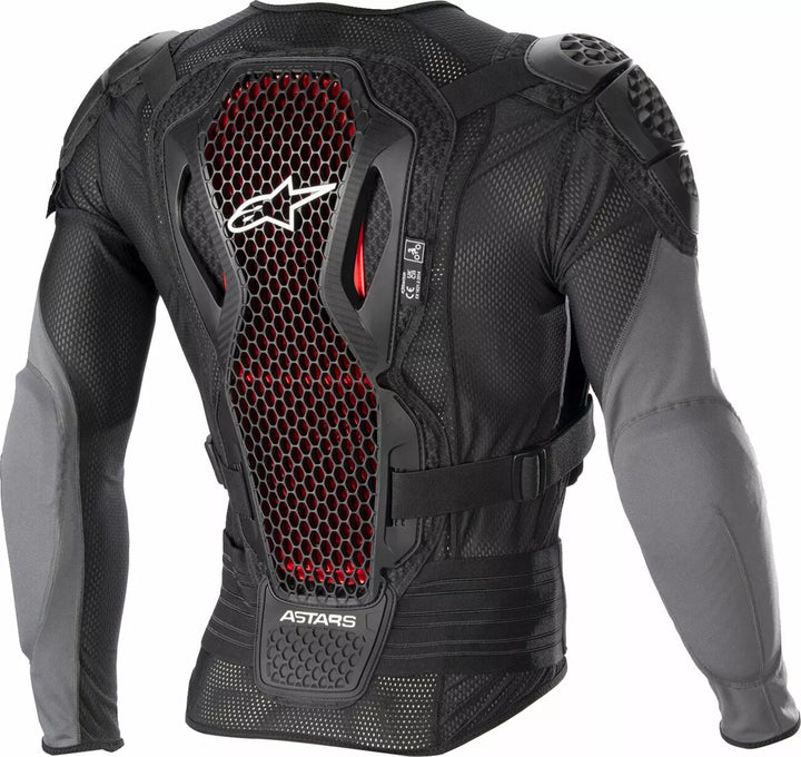 Hybrid nucleon cell protective technology with perforated EVA inserts, One-piece chest protection, Open cell components for lightweight ventilation, Durable stretch main chassis with secure and customizable fit, Adjustable chest to shoulder armor connection straps, Adjustable side quick buckles with elastic straps, Adjustable waist belt, Bionic Neck Support compatibility with elasticated BNS pull tabs, Back protector EN 1621-2:2014 Level 2., Chest protector EN 1621-3:2018 Level 2., Elbow & shoulder protectors EN 1621-1:2012 Level 1.