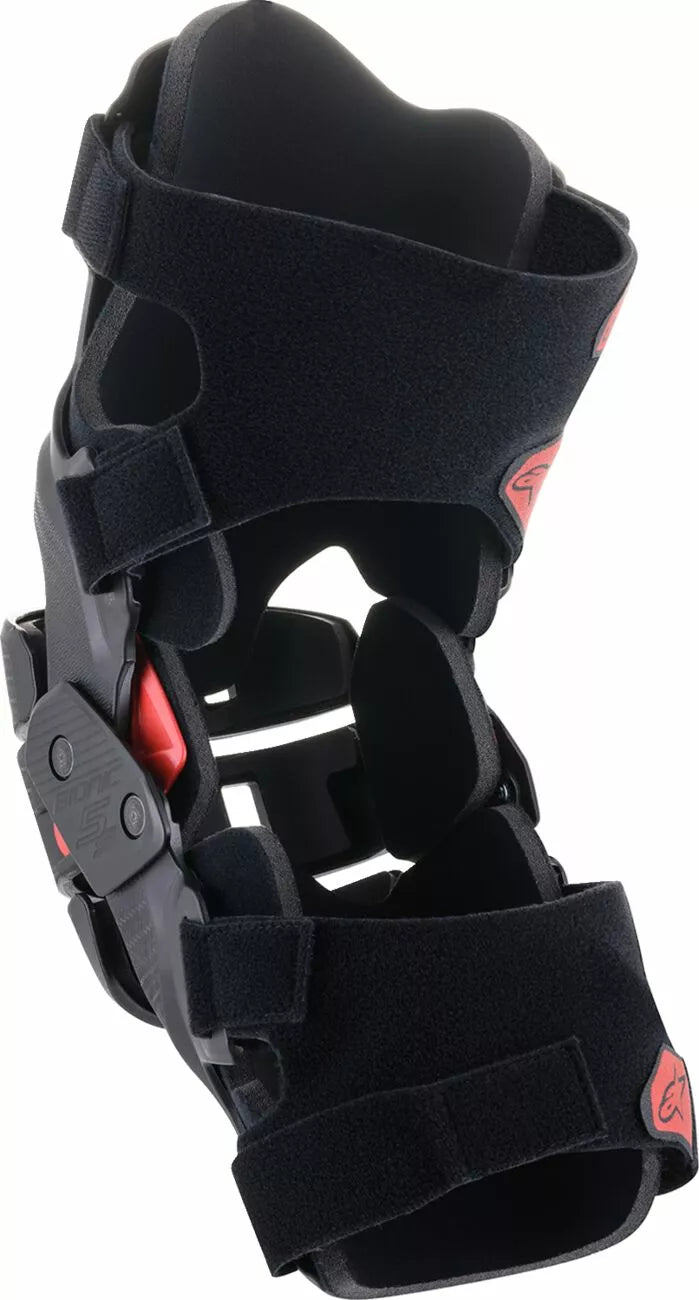 Innovative hybrid frames are constructed from a flexible composite over-injected with a high performance fiber reinforced polymer which provides optimal structural integrity and support while being ultra-lightweight and adaptive, Slim ergonomic design for riding comfort during dynamic movement, Extremely stable slim-design four-point hinge system perfectly follows the articulation of the knee, Lightweight and highly ventilated knee protector offers strong impact force dispersion and absorption while ensuring maximum coverage area in all riding positions, The frame system reduces the risk of sustaining injuries to the medial and lateral collateral ligament, the anterior and posterior cruciate ligament and the lateral and medial meniscus, Knee protector EN 1621-1:2012 Level 1.