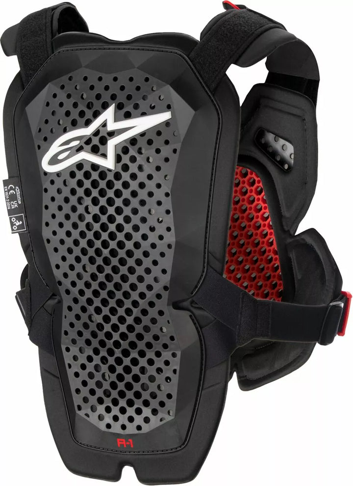 Lightweight chest protection, Fully impact protective, New construction for more direct airflow and optimized air circulation under the main shell; most ventilated of the chest protectors, Unrivaled comfort with dual density low profile injected plates, Harder compound central area for protection, Soft contour for body adaptation, Back protector EN 1621-2:2014 Level 1., Chest protector EN 1621-3:2018 Level 1.