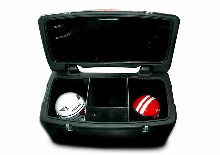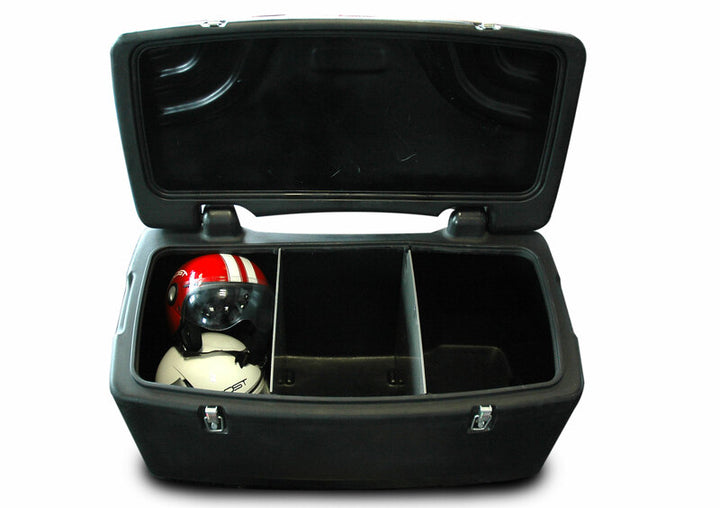 One of the biggest storage box everRemovable inner wallsDelivered with 2 safety hooksAvailable locking (not included)Weather-sealed topOptional passenger back seat BZ9001 can be mounted Color: Black Heigth_cm: 49.0 Helmet_capacity: 2.0 Length_cm: 50.0 Luggage_Capacity_L: 197L Width_cm: 97.0