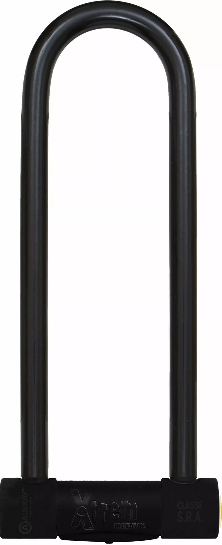 Security U-Lock, Ø 18 mm passivated hardened steel shackle, Shackle protection cover in black matte finish, Hardened steel lock body, Hardened steel double bolt locking mechanism, 7 discs hight security lock cylinder, Sawing and attack proof, pick proof cylinder, Shackle anti-rotation feature in case of cutting, ABS shell with key dirt cover, 2 flat milled keys, Key cutting service, using exclusive code number