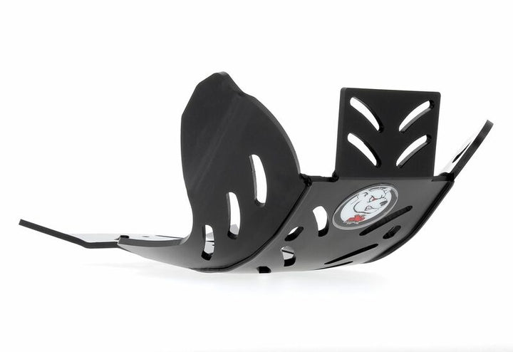 Full engine protection Protect engine block, side engine case and frame on enduro bikesPolyethylen high density, 6mm thickness, cut and heat formed40% lighter than aluminium 4mm thicknessNo shock memoryNo vibrationEasy mounting on the OEM brackets without drilling or bike modificationHardware kit and instructions included Color: Black