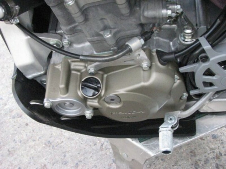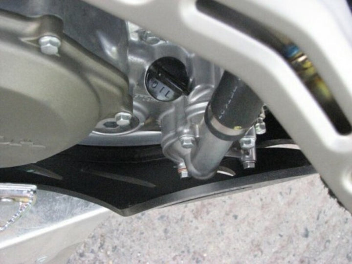 Protect engine block and frame on motocross Polyethylen high density, 6 mm thickness, cut and heat formedMore enveloping than MX skid plateLighter than Enduro engine guard40% lighter than aluminium 4 mm thicknessNo shock memoryNo vibrationEasy mounting on the OEM brackets without drilling or bike modification (hardware kit and instructions included) Color: Black