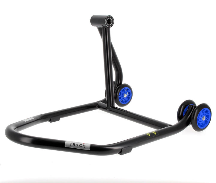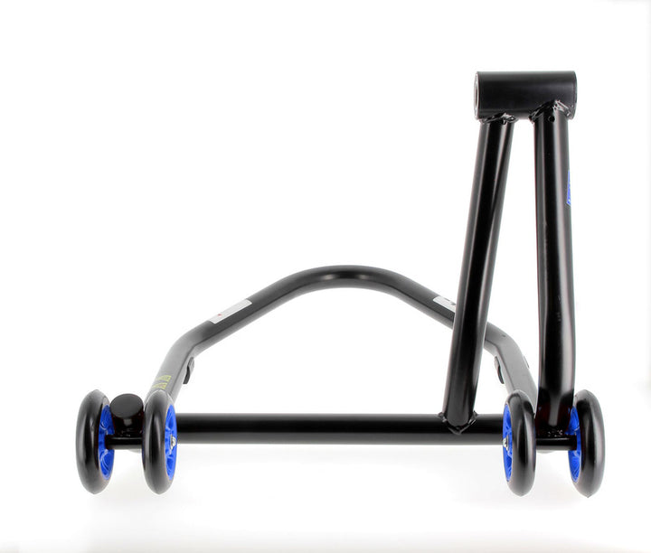 BIHR Home Track new Paddock Stands are developped in partnership with Indespro, Spanish manufacturer. Stand tubes in Ø 35mm Steel4 Ø 110mm WheelsMat Black powdercoated paintMetal effect Sticker Pins are to order separately Color: Black & Blue Maximum Load kg: 250.0