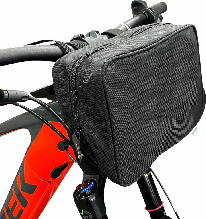 Provides simple way to carry the necessary items with you while on your E-bike, Designed to carry E-bike charger, power cord, owner's manual and much more, Using two hook-and-loop straps that securely attach around the handlebars and one strap around the stem, the Charger bag mounts securely without any tools needed, Dual zipper, Top clutch handle for carrying, Fits your daily essentials including a wallet, phone, sunglasses, etc.