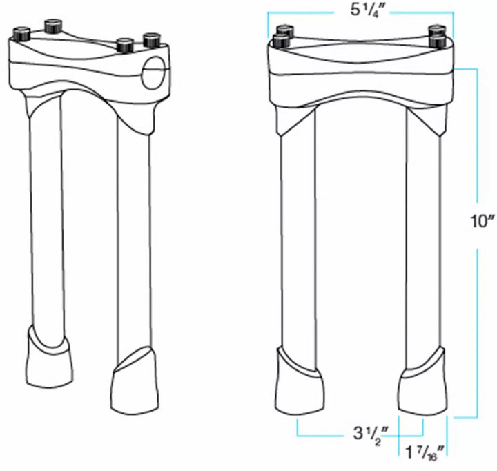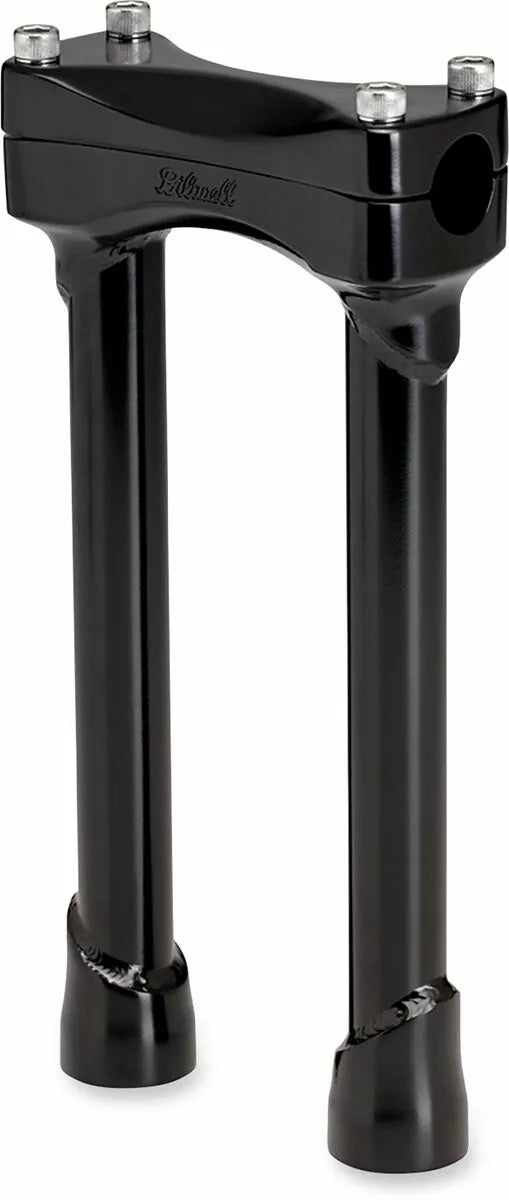 Investment-cast steel one-piece top clamp, TIG welded 0.120" wall 4130 chromoly steel uprights with 1/2"-13 threads, Handlebar clamp bolt patterns fit speedo/tach brackets on many stock model year Harleys, For 1" bars