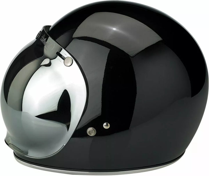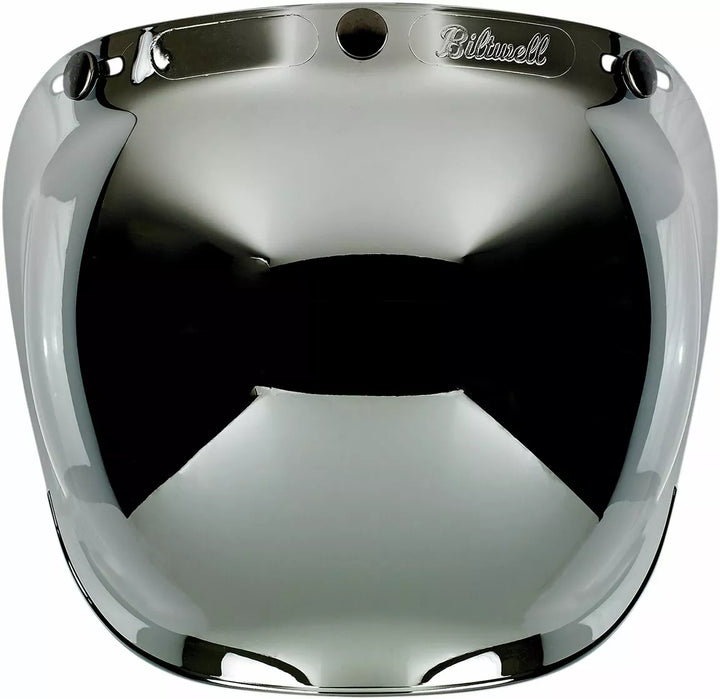 Injection-molded polycarbonate shields in multiple finishes, Feature an anti-fog coating, Plated snaps feature the Biltwell anvil logo, Fit stock 3-snap visor configuration on most helmets