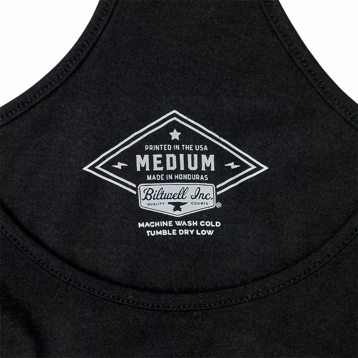Sideseamed, merrowed bottom hem, Sheering at racerback seam, Made with 91% polyester / 9% combed and ring-spun cotton, Printed in the USA