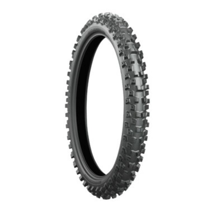 TRACTION, TRACTION, TRACTIONMove forwards, not sideways, thanks to Bridgestone’s proprietary block design that delivers outstanding acceleration and braking response. PRO CIRCUIT TECHNOLOGYThe Battlecross X20 integrates technology developed on the pro circuit, for all types of riders from beginners to international championship riders. AMAZING CORNERING GRIPThe Battlecross X20’s incredible grip straightens out even the most challenging course, letting you corner like you’re on rails! HUGE OPERATING RANGEDeveloped to handle a wide range of terrain from soft to medium and even mud, this really is one versatile performer! FAST, EASY MOUNTINGFully symmetrical block alignment on the rear tyre means it can be mounted in either direction for an even faster changeover in the pits. Aspect_ratio: 100.0 Ground: Medium-Soft Homologation: NHS (Not for Highway Service) Position: Front Rim_diameter: 21.0 Speed_index: M < 130 km/h Tire_category: MX, SX Tire_family: Motorcycle & Scooter Tires Tire_load_index: 57.0 Tire_pattern: BATTLECROSS X20 Tire_Structure: X-Ply Tire_width: 90.0 Tubeless_or_Tubetype: TT - Tubetype