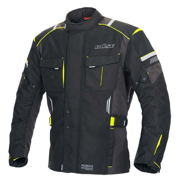 Buse Breno Pro är en mångsidig och vädertålig MC-jacka som erbjuder hög komfort, säkerhet och praktiska funktioner för motorcyklister. Med sin vattentäta och ventilerande HUMAX®-klimammembran samt ett avtagbart värmefoder är den anpassad för både korta och långa resor – oavsett väderförhållanden.