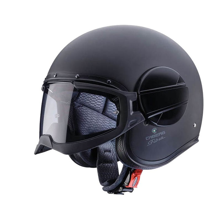 Två skalstorlekar för att kunna erbjuda bästa möjliga proportioner mellan huvudstorlek och skalvolym. Lilla skalet omfattar XS-L och stora skalet XL-XXL. Ett Pinlock-visir sitter monterat för att motverka imma. Spännes med micrometiskt lättjusterat snabbspänne. Fullt uttagbar och tvättbar klimatinredning och fina kosmetiska detaljer. Hjälmen är förberedd för Cabergs Just Speak Easy intercom-system och har extra utrymme för både hörlurar och mikrofon.