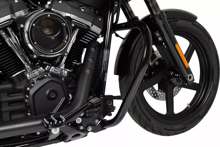 Made from stout 1-1/2" diameter thick-wall steel with heavy-duty welded flanges, Constructed for strength and long lasting good looks, Offers plenty of foot room around floorboards and foot controls, Provides alternative platform upon which to stretch out and rest your feet, Highway bars are designed for appearance only and may provide only a small amount of protection for the motorcycle. They are not intended to provide bodily protection in any circumstance., Made in the U.S.A.