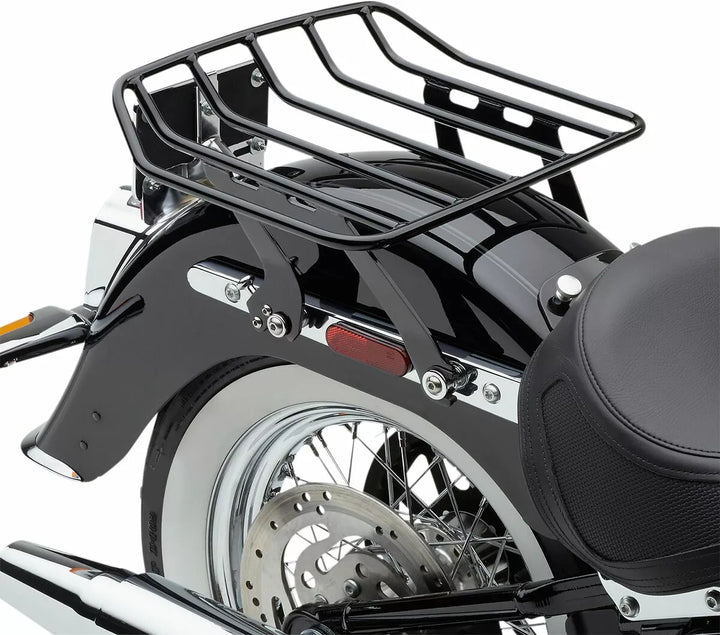 Top of the rack is about level with top of seat and each rack has a kick up in the rear, There are places to attach bungee cords or mounting straps so you no longer have to scratch your bikeメs fender as you secure your cargo, Mounting hardware included, Made in the USA, Does not work with nor require Harley-Davidson mounting kit., If aftermarket seat is not Saddlemen or Lucky Daves step ups, then look carefully at the measurements of the opening to ensure the rack will fit around your bikeメs seat.