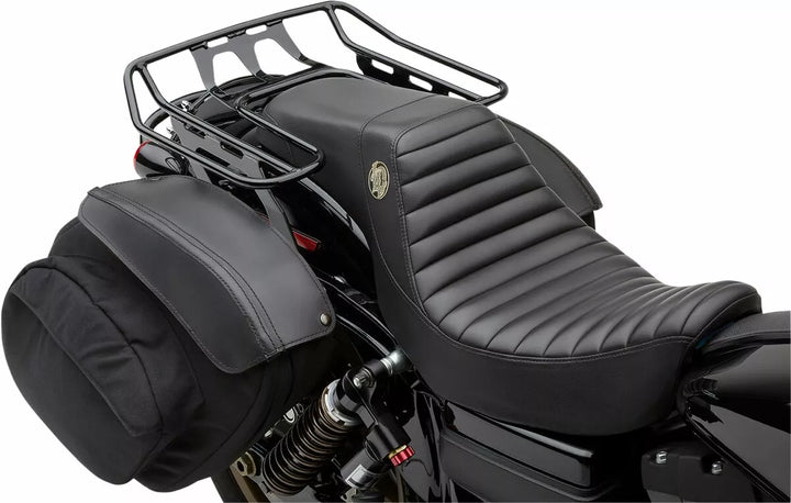 Top of the rack is about level with top of seat and each rack has a kick up in the rear, There are places to attach bungee cords or mounting straps so you no longer have to scratch your bikeメs fender as you secure your cargo, Mounting hardware included, Made in the USA, Does not work with nor require Harley-Davidson mounting kit., If aftermarket seat is not Saddlemen or Lucky Daves step ups, then look carefully at the measurements of the opening to ensure the rack will fit around your bikeメs seat.
