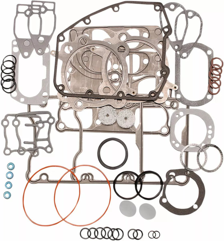 EST (Extreme Sealing Technology) gasket kit includes embossed stainless steel head, base, and rocker gaskets covered with a proprietary rubber material, Head gasket material allows heat to be drawn away from the combustion ring and dissipated evenly across the gasket surface to eliminate hot spots and gasket failure, Set contains all the necessary gaskets, seals, and O-rings to rebuild the top end from the cylinder base upward, Made in the USA