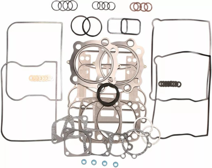 EST (Extreme Sealing Technology) gasket kit includes embossed stainless steel head, base, and rocker gaskets covered with a proprietary rubber material, Head gasket material allows heat to be drawn away from the combustion ring and dissipated evenly across the gasket surface to eliminate hot spots and gasket failure, Set contains all the necessary gaskets, seals, and O-rings to rebuild the top end from the cylinder base upward, Made in the USA