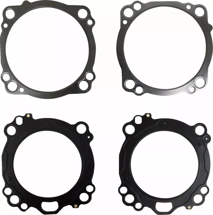 Contains a pair of 106 mm bore MLX Multi layer steel with stopper layer head gaskets, and a pair of Single Layer Steel (SLS) base gaskets. The gaskets are stainless steel with an Elastomer coating and embossed, The head gaskets have the MLX stopper center layer for high cylinder pressure applications and are .024" thick and the base gaskets are single layer steel .012" thick, have an elastomer coating and are embossed