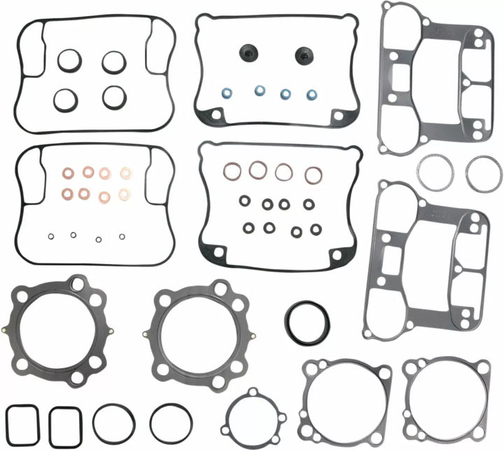 EST (Extreme Sealing Technology) gasket kit includes embossed stainless steel head, base, and rocker gaskets covered with a proprietary rubber material, Head gasket material allows heat to be drawn away from the combustion ring and dissipated evenly across the gasket surface to eliminate hot spots and gasket failure, Set contains all the necessary gaskets, seals, and O-rings to rebuild the top end from the cylinder base upward, Made in the USA
