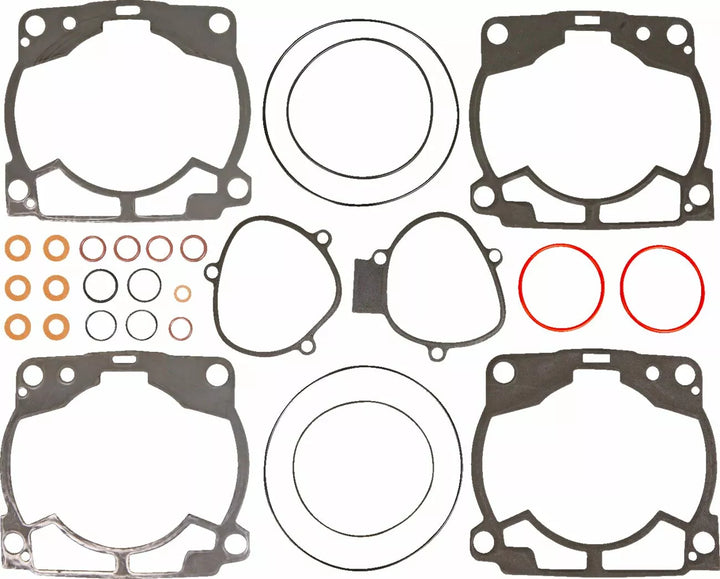 Top end gasket kit includes correct base, head gasket and cylinder O-rings as well as other top end specific O-rings or seals needed for R&R of top end, MLS head gaskets promote an even torque load across the gasket sealing surface, providing less bore distortion and better piston ring seal for more power, 4-stroke head gaskets are made to perform on todayメs highest-output 4-stroke naturally aspirated and boosted machines, utilizing a multi-layered steel design with the outer layers being embossed and coated with a Viton rubber coating; these head gaskets are designed to meet the demands of today's high-horsepower, high-cylinder-pressure engines, EST (Extreme Sealing Technology) gasket kit includes embossed stainless steel head, base and rocker gaskets covered with a proprietary rubber material, Head gasket material allows heat to be drawn away from the combustion ring and dissipated evenly across the gasket surface to eliminate hot spots and gasket failure, Made in the USA