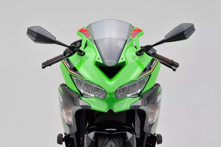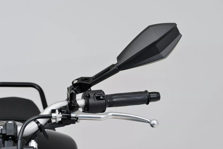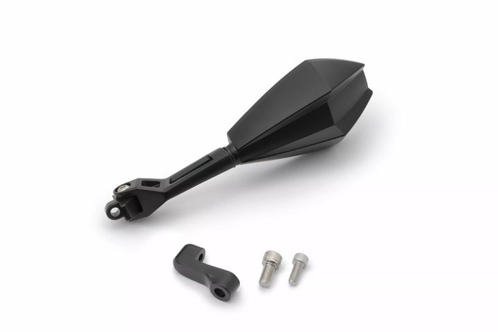 ECE-approved., Material mirror head: ABS, Material mirror arm: aluminum, One black mirror for the right/left side to mount at the handle/fairing