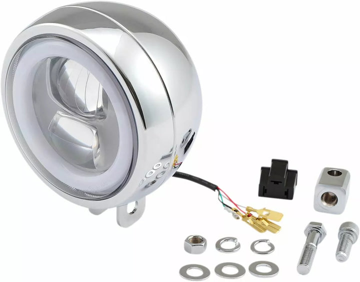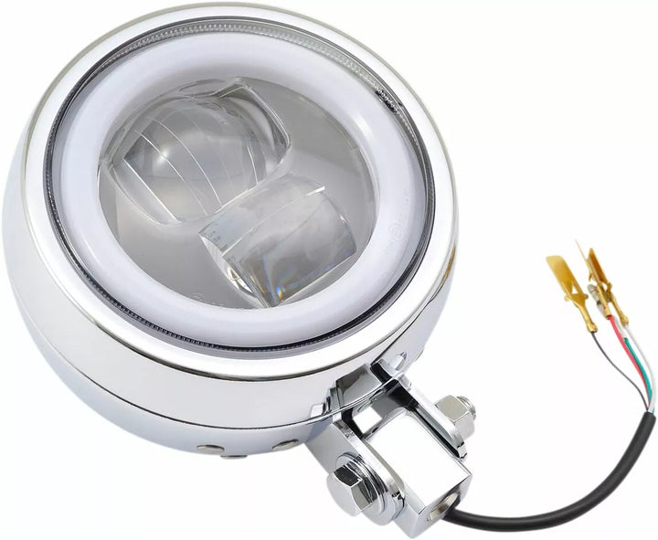 LED headlight with tight metal housing, E-marked position- and parkinglight (angel eye), drivinglight and high beam, Highly vibration- and waterresistant