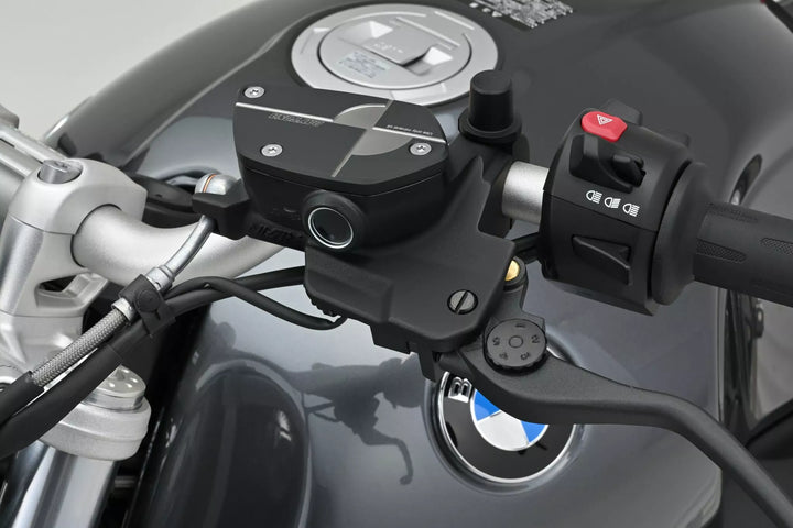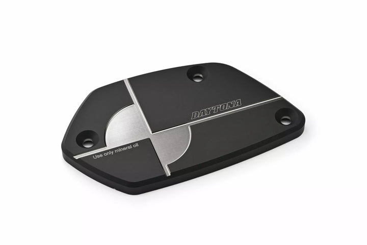 CNC-machined aluminium master cylinder tank cap of the rear brake in black and gun-metal grey double-anodized, Used with the OEM gasket / diaphragm