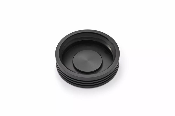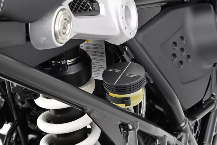 CNC-machined aluminium master cylinder tank cap of the rear brake in black and gun-metal grey double-anodized, Used with the OEM gasket / diaphragm