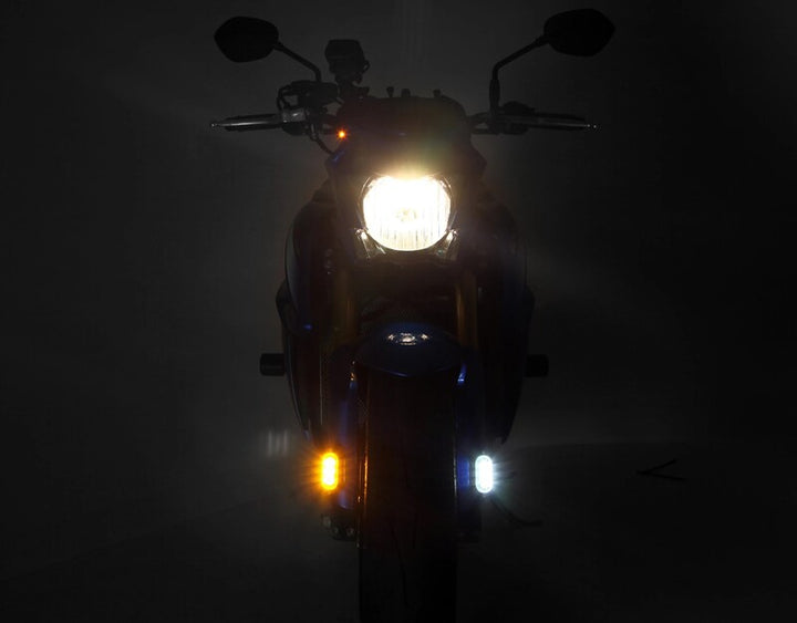 Extrem synlighet med återkopplande vit-gul DRL/blinkers-funktion