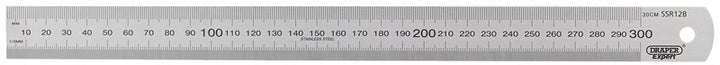 Expert Quality, precision rules manufactured from hardened stainless steel matt chrome plated. Clear black graduations of 0.5mm, mm, 0.5cm, cm and 1/64", 1/50", 1/32", 1/20", 1/16", 1/10", 1/2", and inches on the reverse Permanently etched for long service life Length_cm: 30.0