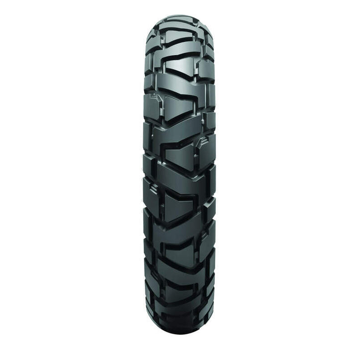 A true Adventure tire, offering premium performance in a wide range of terrain. After more than two years in development, the Trailmax Mission delivers knobby-like performance off-road, has impressive grip on the street, plus great ride quality and stability everywhere it goes. Key Features Rugged tread blocks feature Staggered Step design, a feature to provide rigidity in the contact patch, enhancing stability and handling.Wrap-around lugs on the tire’s edge help protect the tire from sharp rocks and provide additional traction.New compounds for perfectly balanced road and off-road performance, as well as class-leading mileage performance.Deep grooves offer additional biting edges for off-road performance.Fits popular large and small displacement machines including the Honda Africa Twin, Suzuki V-Strom, BMW GS models, KTM 1290/1290S, 790R/790S, Yamaha Ténéré, Triumph 800/900/1200 models and many more.The Mission delivers knobby-like performance off-road, ample grip on the street, plus great ride quality and load carrying capability everywhere it goes. Aspect_ratio: 70.0 Markings: Mud and Snow Position: Rear Rim_diameter: 17 Speed_index: T < 190 km/h Tire_category: Trail on-off Tire_family: Motorcycle & Scooter Tires Tire_load_index: 69.0 Tire_pattern: TRAILMAX MISSION Tire_Structure: X-Ply Belted Tire_width: 150 Tubeless_or_Tubetype: TL - Tubeless