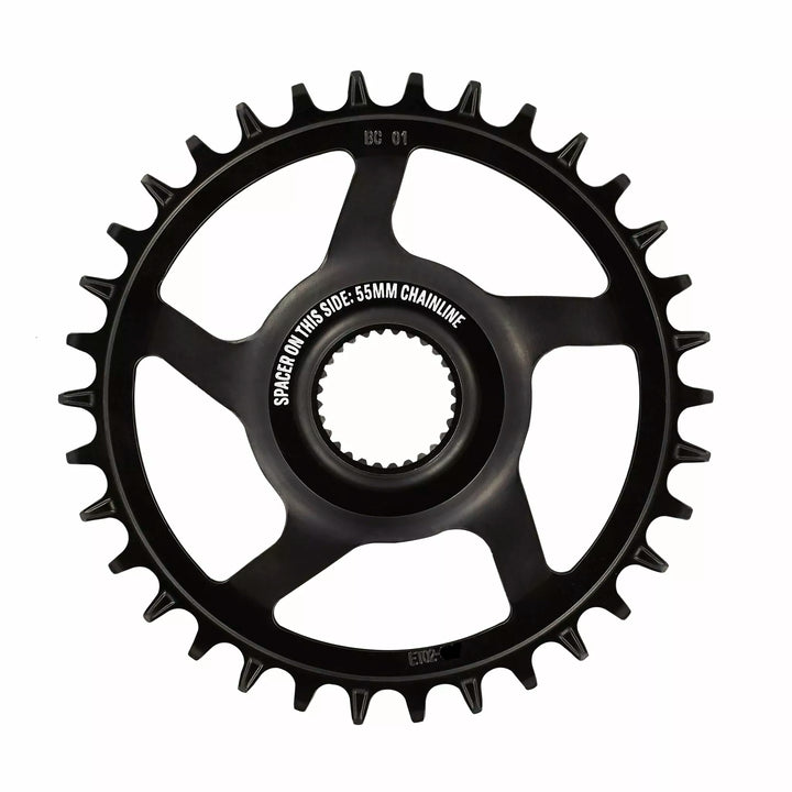 Helix Core e*spec Direct Mount Chainrings feature our narrow-wide tooth profile, for reliable chain retention and an extra long wear life. , Designed with an adjustable 13.5-15.5mm offset via spacer, they provide adaptability to both 53 and 55mm chainlines for Bosch CX and SX motor systems. , Helix Core e*spec rings are cold-formed from steel then heat treated to provide excellent durability and toughness, all at a price that's easy on your wallet., Chainline: 53/55mm., Color: Black., Compatibility: Bosch SX / Gen4 CX Direct Mount., Material: 4040 Steel.