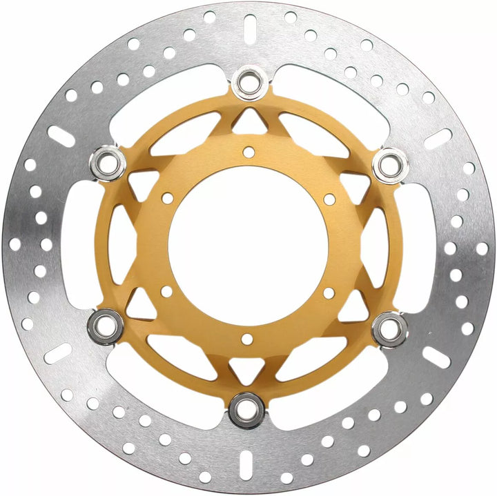 Ultra lightweight EBC Brakes X series floating front MC rotors since their introduction, have become one if the worlds best selling lightest and best performing discs available for all modern sport bikes. Floating MC rotors feature EBC Brakes unique and patented S-Drive button system which features square sided rivets captured in square drive pockets on the rotor and hub which allow the outer rotor blade to expand and contract freely under the heat of braking without suffering rivet lock., Hand built and inspected, Ultra lightweight but strong, Patented square drive button system (Floating rotors), Designed as an OEM improvement