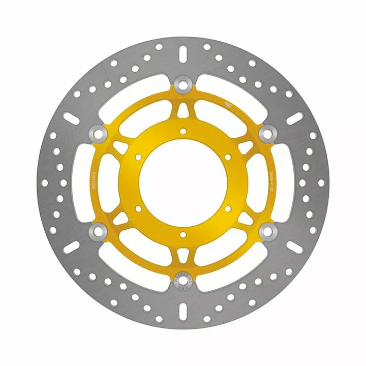 Ultra lightweight EBC Brakes X series floating front MC rotors since their introduction, have become one if the worlds best selling lightest and best performing discs available for all modern sport bikes. Floating MC rotors feature EBC Brakes unique and patented S-Drive button system which features square sided rivets captured in square drive pockets on the rotor and hub which allow the outer rotor blade to expand and contract freely under the heat of braking without suffering rivet lock., Hand built and inspected, Ultra lightweight but strong, Patented square drive button system (Floating rotors), Designed as an OEM improvement