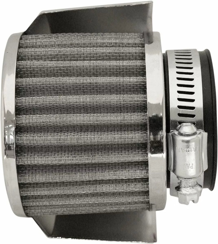 Includes stainless steel clamp for secure attachment, Quality high-flow paper elements with chrome end cap, Width is the largest diameter of filter media, Check carb inlet outer diameter before ordering