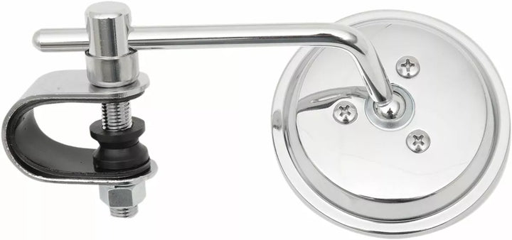 Stamped chrome back with 3" mirror provides timeless look, Fully adjustable for left or right sides