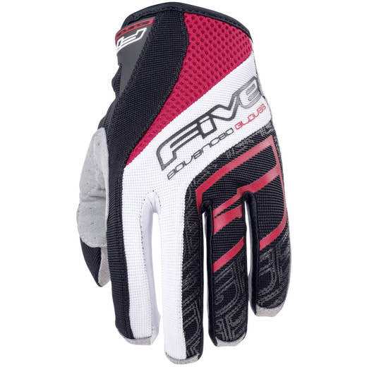 Five har utvecklat ett material som garanterar maximalt grepp och känsla under körning. Meshtyg i fingertopparna för maximal ventilation. Gel pad på tumgrepp för att minska uppkomsten av blåsor. Gel pad skydd på handflatan för att dämpa stötar och slag vid vurpor. Kardborre som hindrar smuts från att komma in i handsken. Dessa handskar passar lika bra till cross som till bmx.