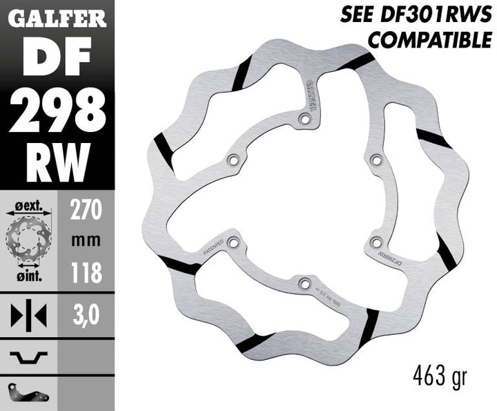GALFER BRAKE DISC FIXED WAVE GROOVED DF298RW