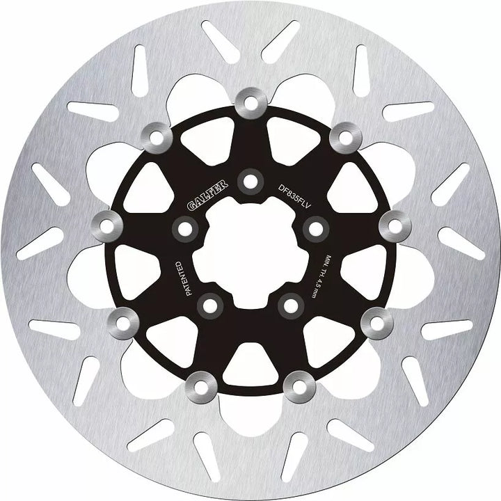 Lower weight of the unsprung masses., More braking power., Better heat dissipation., Excellent resistance to corrosion., Less tendency to warp., Maintains cleaner the contact surface pad-disc., Improve and personalize the motorcycle esthetic., Anodized or chromed high resistance aluminium (7075 T6 ヨ 6082 T6) or stainless steel (AISI 420) carrier.