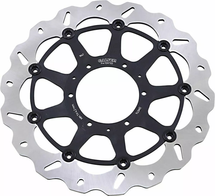 Laser-cut double disc ground 420 high carbon stainless steel, Direct-replacement brake rotors; do not require any extra parts, bolt on just like a stock brake disc, Full-floating design rotors have an aluminum center carrier, Improves brake lever feel and modulation, Rotors cool as they rotate to lower brake operating temperatures, Design is self-cleaning, removes water as it rotates, Less tendency to warp, Manufactured in Spain, For maximum braking performance and rotor longevity, Galfer recommends using Galfer brake pads with Galfer rotors.