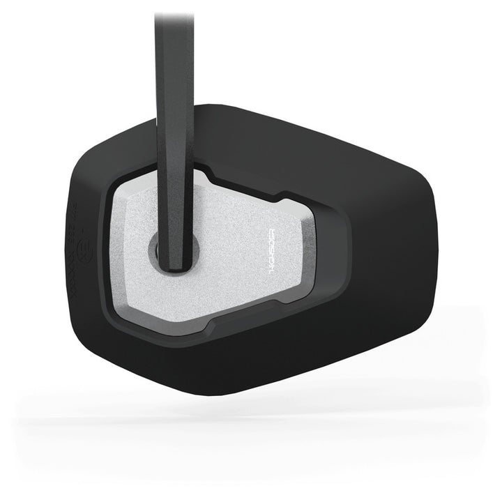 Rising and flat trapezoids create the futuristic design of the Highsider ESAGANO-RS mirror series, which thus picks up the design language of modern motorcycles. The base body of the mirror head, made of high-quality plastic, encloses the distinctive inlay, which is CNC machined from aluminum. This symbolizes the design language of the ESAGANO product family and creates a unique recognition value with the rising and flat tapered geometries. The bead-blasted and matte black anodized surface of the aluminum contrasts with the surface of the mirror head, completing the image. The long handlebar end stem in aluminum embodies design and function. In this way, the forces acting on the mirror during travel are dissipated particularly effectively via binomial structures using tension and compression points. At the same time, this structure reduces the weight of the mirror stem and also creates a visually harmonious overall appearance. The handlebar end mirror can be mounted both standing and hanging on the handlebar. The mirror is mounted using the optically matching handlebar weight ESAGANO-LS with 12mm stem mount or a handlebar weight in an alternative design from our product range. If there is sufficient space, the mirror can also be attached directly to the handlebars via the supplied aluminum adapter rings
