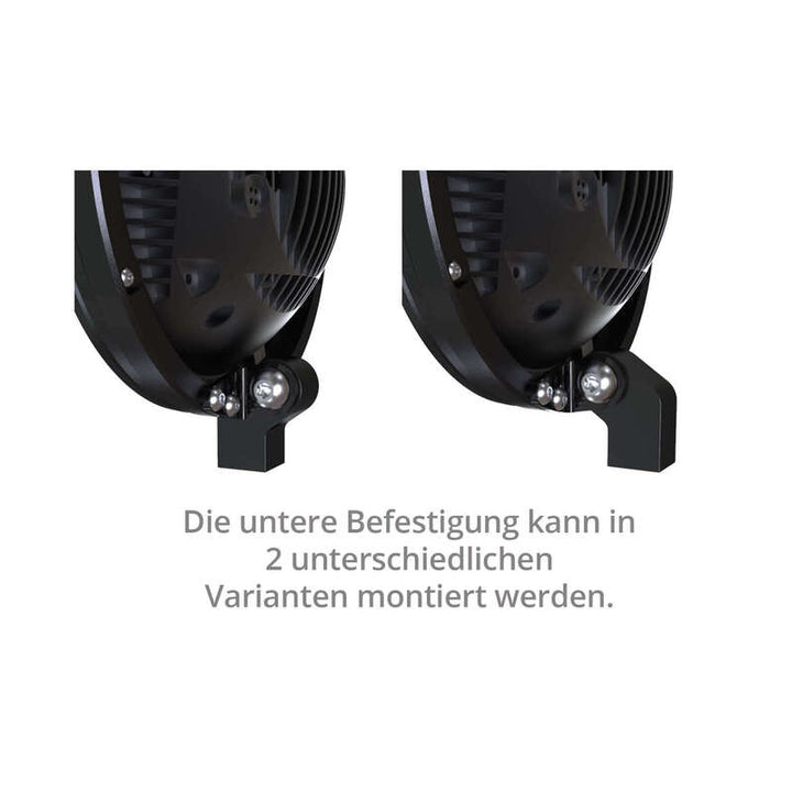 Every centimeter counts to place the headlight as closely as possible between the two standpipes in the fork. REDUCED TO THE MAX was the premise behind the development of the innovative FRAME headlight mount. With the purist aluminum ring, it is possible for the first time to mount different LED headlight inserts free-standing on the motorcycle. By deliberately dispensing with a headlamp housing, an unbeatably tight installation position is made possible and, in addition, better cooling of the LED unit is achieved. On many motorcycles, the H4 or H7 lamp lights up, more or less sparkling away. Seeing better usually also means being seen better at the same time, not unimportant when summer turns to fall and in times when cars are increasingly often equipped with bright daytime running lights. Whether to replace for better visibility at night, better visibility during the day, or to give your motorcycle a nicer look, if you're looking for a stylish and innovative power headlight, the FRAME-R1 LED main headlight is an excellent choice. The installed LED daytime running light in TYPE 11 is the perfect way to improve visibility during the day. The ellipsoidal lenses combined with powerful LEDs turn night into day, combining a strong plus in safety with a polarizing unique look. The headlamp is available with a lower or side mounting.