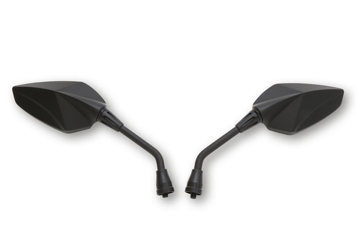 matt-black universal mirror in a sporty design. The plastic mirror is reinforced by a CNC-milled joint sleeve. E-approved.